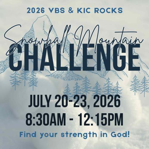 This is Vacation Bible School (and KiC ROCKS) for those that are 3 years old (and toilet trained) - entering 6th grade in the fall of 2026. We will be singing, creating, eating, listening, exploring, and playing while learn more about Jesus!